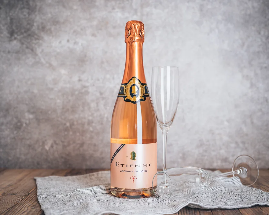 Ein vollmundiger französicher Schaumwein, der im Glas fein rosé schimmert.