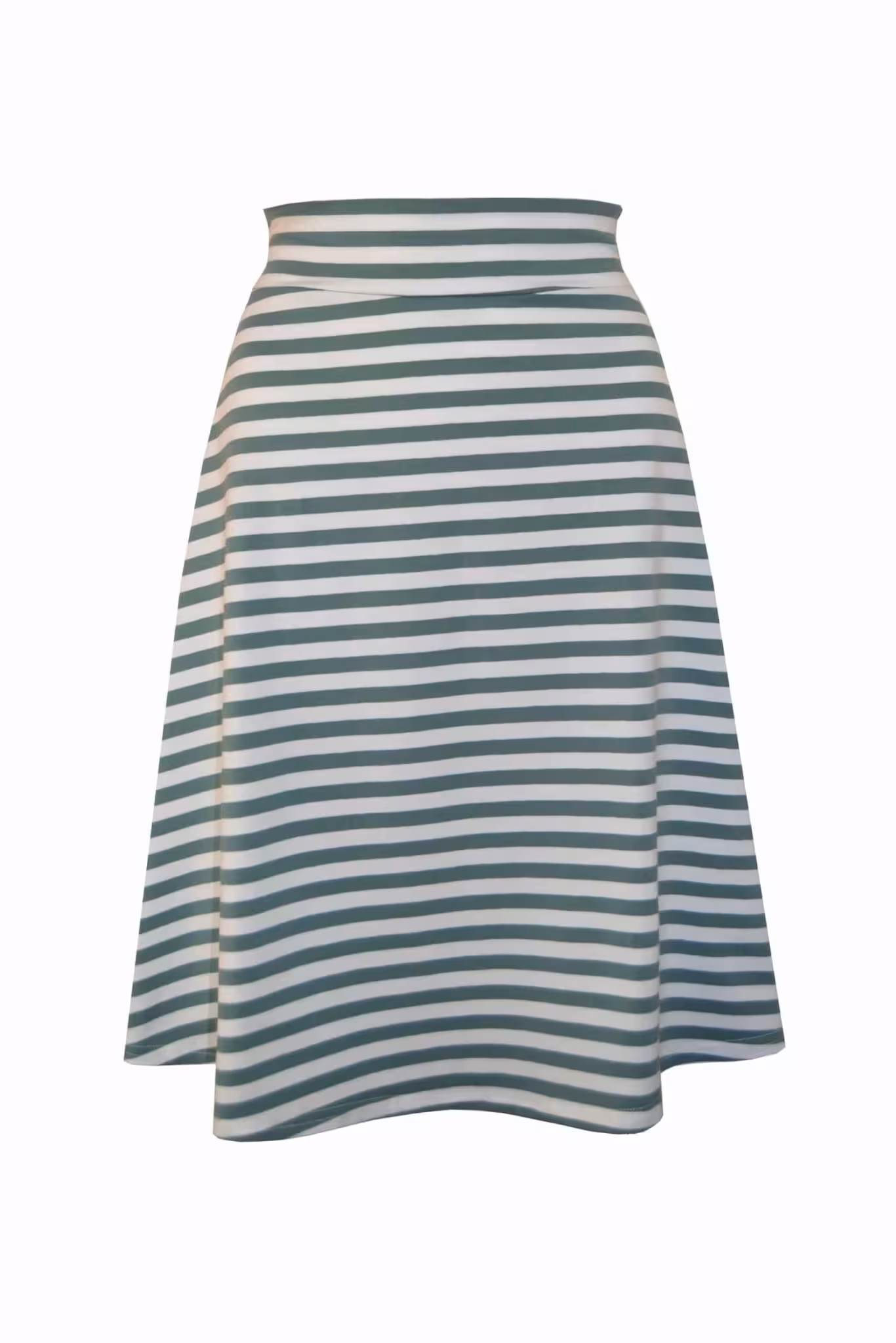 Der knielange Sommerrock ist leicht ausgestellt und besteht aus bequemen Baumwolljersey.